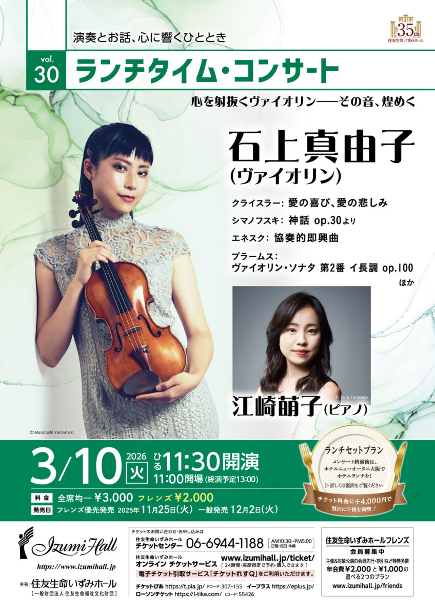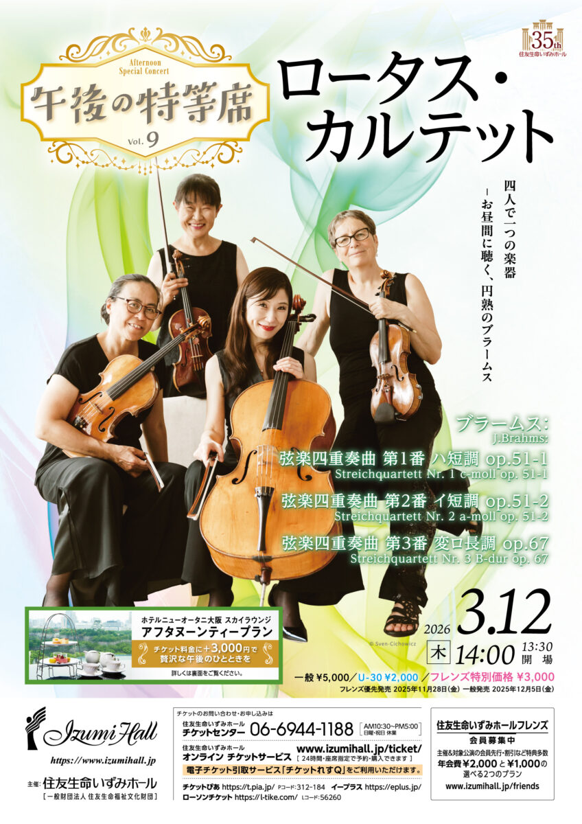 音楽 …企業メセナ協議会が認定したメセナ活動 2025年公演の様子 トヨタ・マスター・プレイヤーズ,ウィーン 2026 2026/03/30~2026/04/09 札幌、仙台、東京、刈谷、名古屋、西宮、福岡 トヨタ自動車株式会社 全国 Kyoto × Classics Vol.15 法然院 ~東山の森に響くチェロ四重奏の愉しみ~ 2025/10/29~2026/03/31 ローム ミュージック チャンネル ローム株式会社/公益財団法人 ローム ミュージック ファンデーション オンライン 第42回トヨタ青少年オーケストラキャンプ 2026/03/29 サントリーホール トヨタ自動車株式会社 東京 プリズムステージ 大津敦ファゴットリサイタル 2026/03/24 HITOMIホール 公益財団法人メニコン芸術文化記念財団 中部 バッハ2025 綾なす調和 Vol.5「揺るがぬ信念」 2026/03/21 住友生命いずみホール 住友生命保険相互会社/一般財団法人住友生命福祉文化財団 近畿 北村 陽(チェロ) 2026/03/20 TOPPANホール TOPPANホールディングス株式会社/TOPPANホール 関東 児玉桃 ピアノリサイタル 2026/03/14 ガトーフェスタ ハラダ 本社1階 エスポワールホール 株式会社原田・ガトーフェスタ ハラダ 関東 第17回TOPPANチャリティーコンサートちらし 第17回TOPPANチャリティーコンサート 2026/03/13 TOPPANホール TOPPANホールディングス株式会社 東京 午後の特等席 Vol.9 ロータス・カルテット 2026/03/12 住友生命いずみホール 住友生命保険相互会社/一般財団法人住友生命福祉文化財団 近畿 ランチタイム・コンサート Vol.30「心を射抜くヴァイオリン――その音、煌めく」 2026/03/10 住友生命いずみホール 住友生命保険相互会社/一般財団法人住友生命福祉文化財団 近畿 SQW #170 クァルテット・ウィークエンド 2025 – 2026「クァルテット・エクセルシオ×レグルス・クァルテット」 2026/03/07 第一生命ホール 第一生命保険株式会社/トリトン・アーツ・ネットワーク/第一生命ホール 東京 向井山朋子 ピアノコンサート 2026/03/07 ガトーフェスタ ハラダ 本社1階 エスポワールホール 株式会社原田・ガトーフェスタ ハラダ 関東 バッハ2025 綾なす調和 Vol.4「楽器は語る」 2026/03/07 住友生命いずみホール 住友生命保険相互会社/一般財団法人住友生命福祉文化財団 近畿 ゴーティエ・カプソン(チェロ)&フランク・ブラレイ(ピアノ) ベートーヴェン《チェロ・ソナタ》全曲 2026/03/06 TOPPANホール TOPPANホールディングス株式会社/TOPPANホール 関東 ベルリン古楽アカデミー I ―Pure Bach/II ―Bach&Beyond 2026/03/04~2026/03/05 TOPPANホール TOPPANホールディングス株式会社/TOPPANホール 関東 三浦一馬バンドネオン・コンサート 2026/03/01 菊川文化会館アエル 大ホール MS&ADインシュアランスグループ/公益財団法人三井住友海上文化財団 中部 宮田 大 Dai-versity 第4回 フランス音楽と狂言の世界 2026/02/28 第一生命ホール 第一生命保険株式会社/トリトン・アーツ・ネットワーク/第一生命ホール 東京 庄司紗矢香 &ジャンルカ・カシオーリ デュオ・リサイタル 2026/02/26 住友生命いずみホール 住友生命保険相互会社/一般財団法人住友生命福祉文化財団 近畿 1 2 … 54 次へ