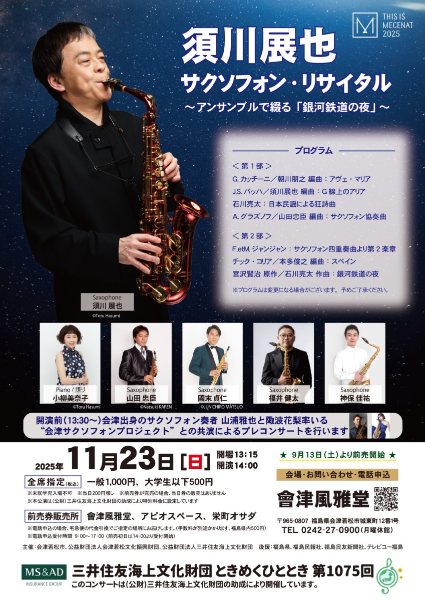 須川展也サクソフォン・リサイタル 〜アンサンブルで綴る「銀河鉄道の夜」〜