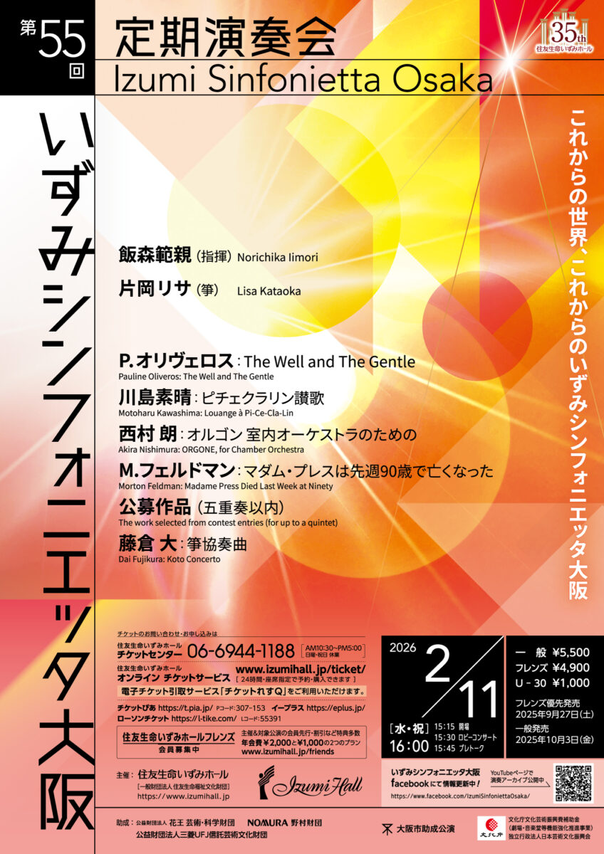■出演:飯森範親(指揮)、片岡リサ(箏)、いずみシンフォニエッタ大阪