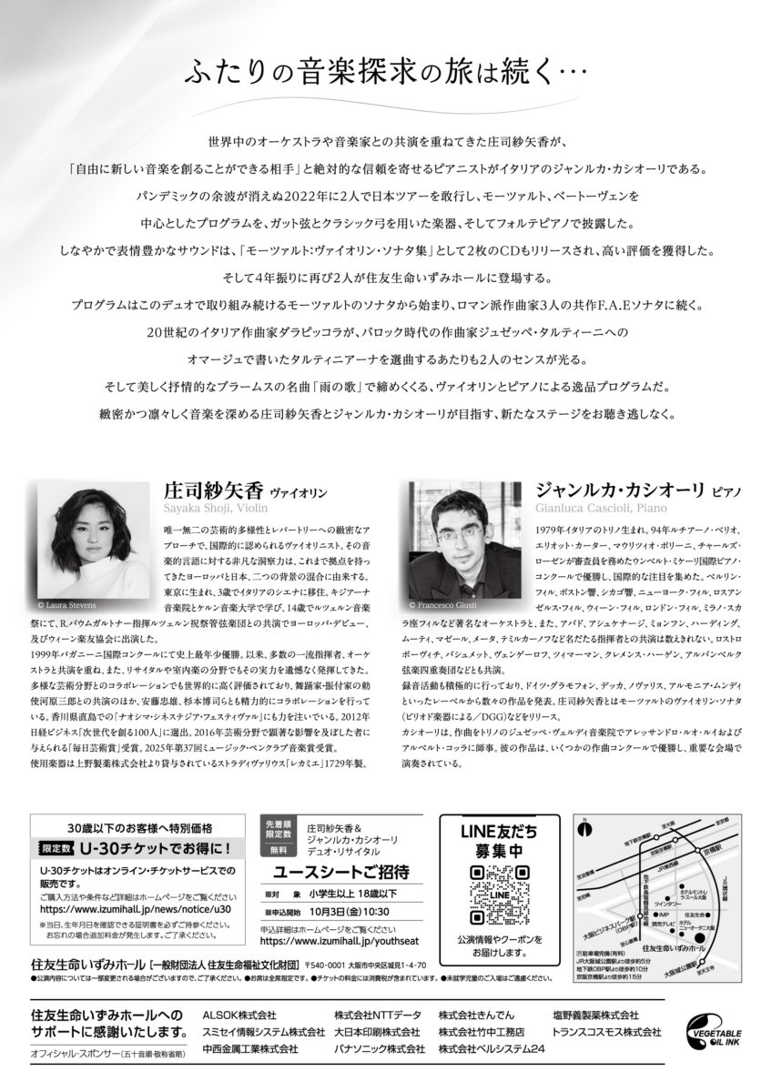 ■出演:庄司紗矢香(ヴァイオリン)、ジャンルカ・カシオーリ(ピアノ)