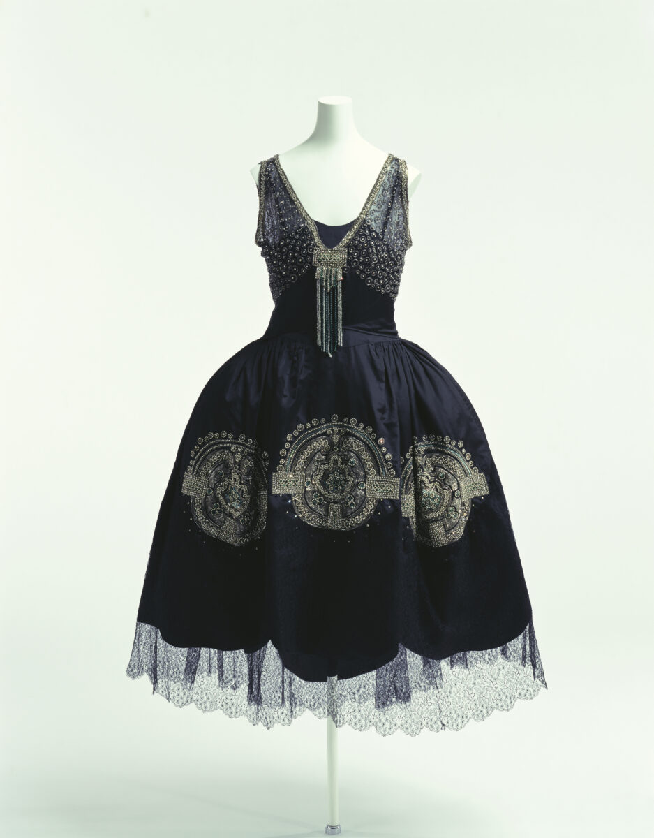 1920年代を中心に世界を席巻した装飾様式「アール・デコ」。生活デザイン全般におよんだその様式は、「モード」すなわち流行の服飾にも現れました。ポワレやランバン、シャネルなどパリ屈指のメゾンが生み出すドレスには、アール・デコ特有の幾何学的で直線的なデザインや細やかな装飾が散りばめられています。それは古い慣習から解放され、活動的で自由な女性たちが好む新しく現代的なスタイルでした。
