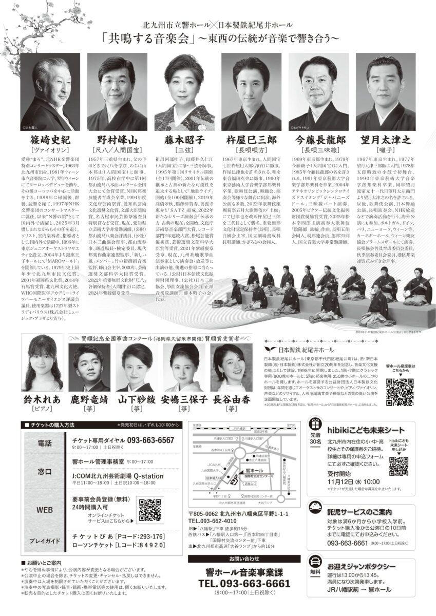 チケットのお問合せ先:響ホール事務室 Tel:093-663-6567