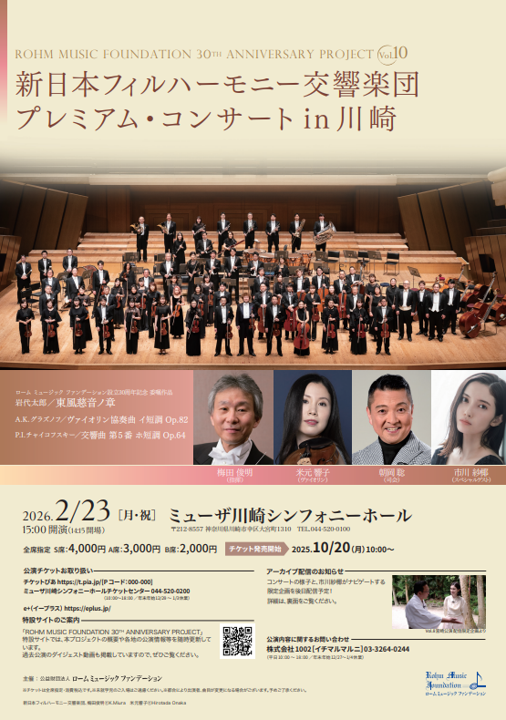 ローム株式会社(本社:京都市)が支援する公益財団法人 ローム ミュージック ファンデーション(京都市)は、「ROHM MUSIC FOUNDATION 30TH ANNIVERSARY PROJECT」の第10弾として、「新日本フィルハーモニー交響楽団 プレミアム・コンサート in 川崎」を2026年2月23日(月・祝)に開催いたします。