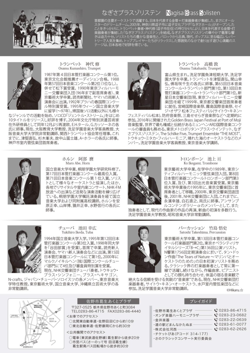 ■出演:神代修、高橋敦(トランペット)、阿部麿(ホルン)、池上亘(トロンボーン)、池田幸広(チューバ)、竹島悟史(パーカッション)