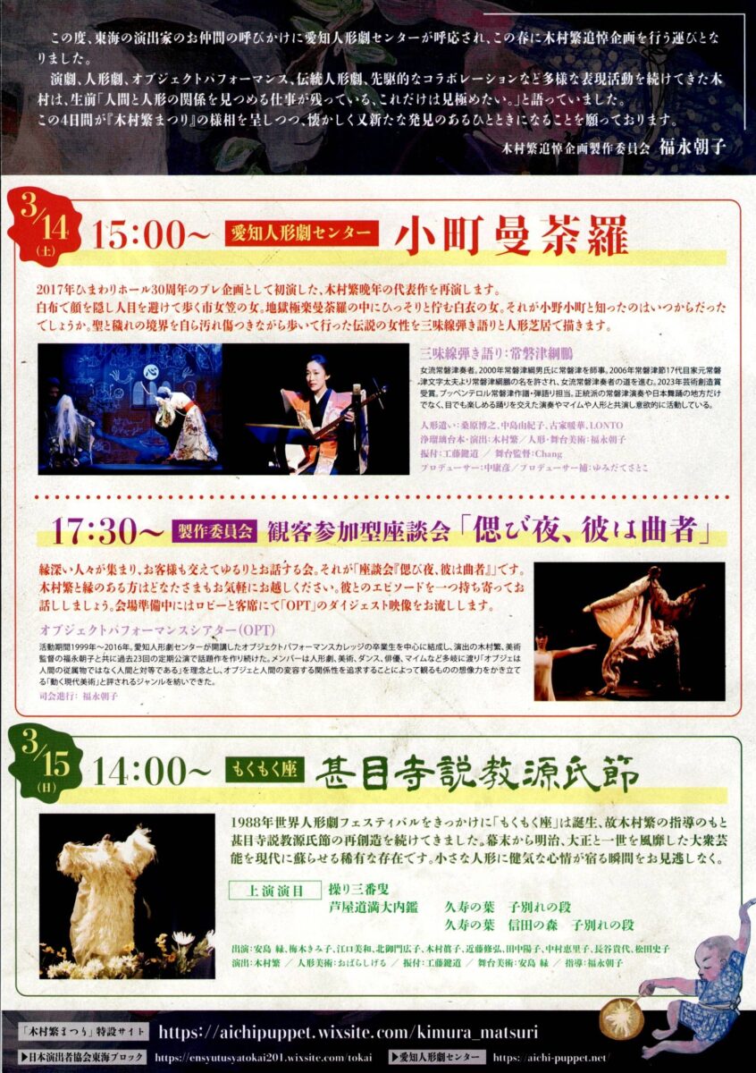 愛知人形劇センターの前理事長で2023年に逝去した木村繁を偲ぶ追悼企画