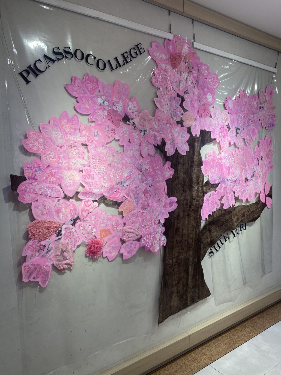 今回の見どころは、ピカソ・カレッジ新百合のメンバーが力を合わせて創り上げた「大きな桜の木」の合作アートです。