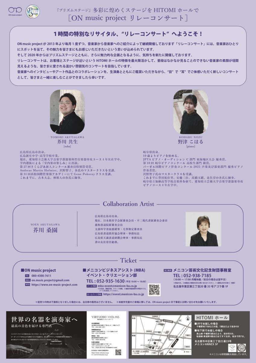 主催:ON music project/公益財団法人メニコン芸術文化記念財団